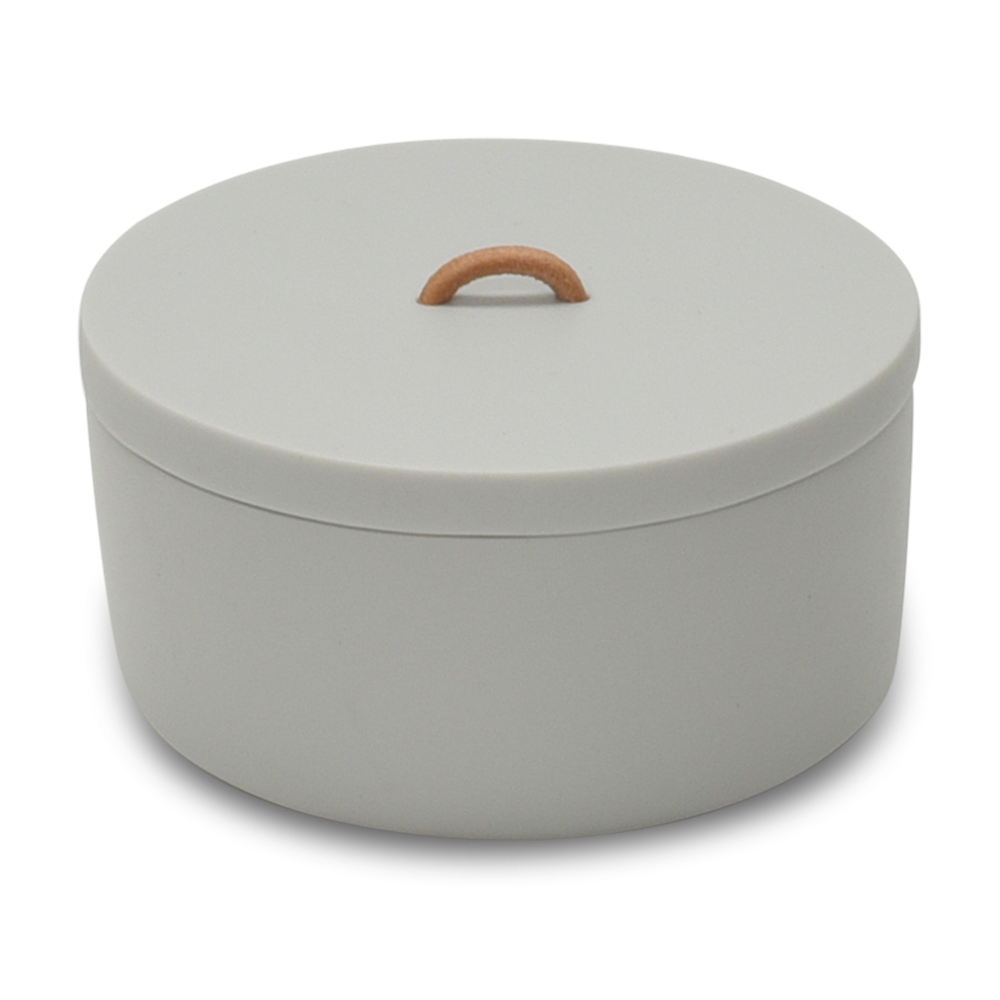 A beautifully crafted round trinket box made from premium resin in a matte white finish with leather handle.